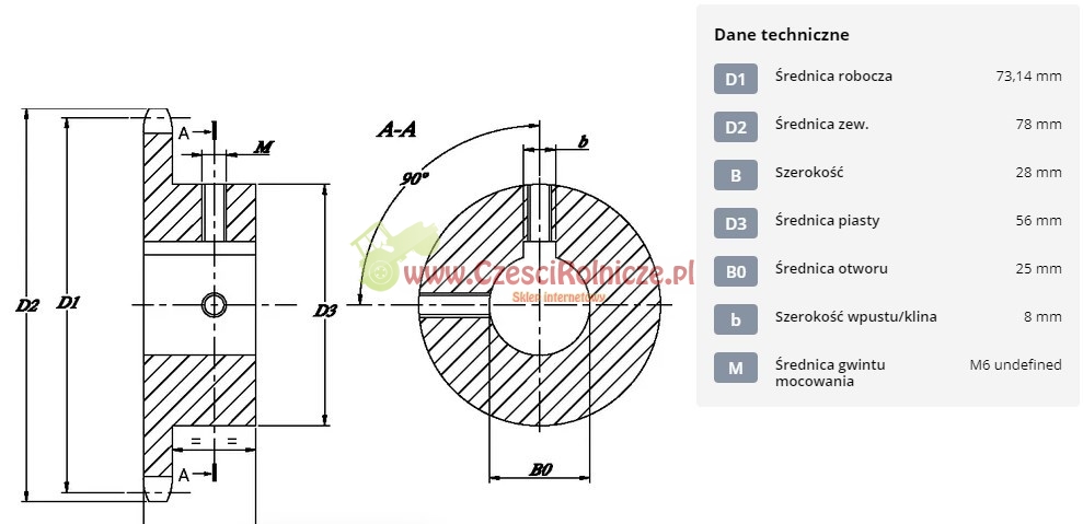 | D3Średnica piasty |