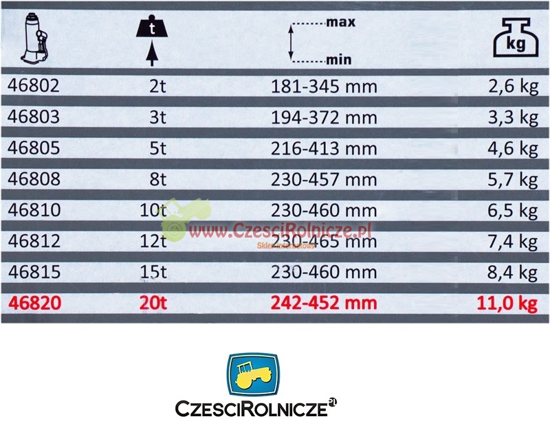 PODNOŚNIK HYD. SŁUPKOWY 8T PROLINE